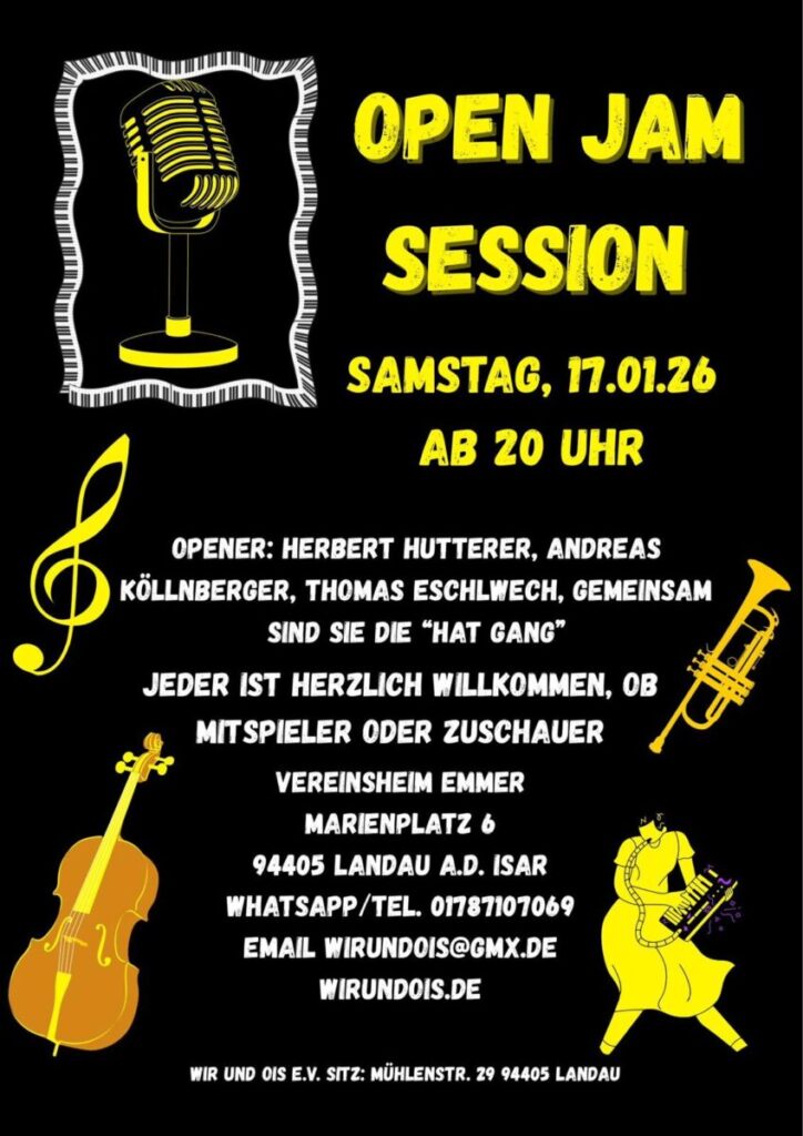 Jam-Session 17.01.2026, Einlass 18 Uhr, Beginn 20 Uhr, Opener Band